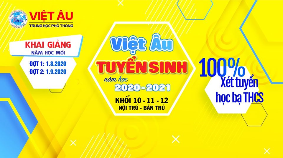 Trong năm học mới 2020 - 2021, Trường THPT Việt Âu tiếp tục tuyển sinh các khối lớp 10, 11 và 12. Theo 2 hình thức Bán Trú và Nội Trú.